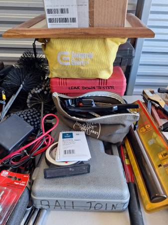 2 full tool rollaways filled with rachets, sockets, wrenches, measuring devices, pneumatic tools, etc. Plus a ton more mechanical parts
