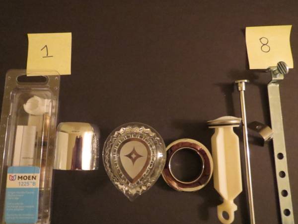 Brand New MOEN Knob Handle FULL ASSEMBLY for installation of knob cartridge and pop-up assembly including sink collar, faucet handle - everything (clips, screw) needed and included.