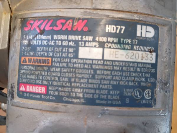 Hi. This is an old very good saw. Now you can get back to work . Cuts through like the wind. Works perfectly. No noises. sounds like new. Nothing broken the cord is perfect. Made in the USA. $60. Please call show contact info