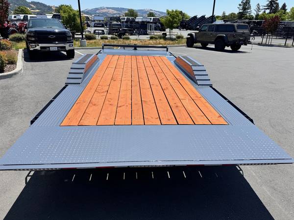 The trailer is one of the newest to our lineup and is an absolute BEAST!!! Designed to haul everything from heavy skid steers and mini excavators to a material for any job! The drive over fenders are what make this trailer unique, giving you the versatility to use the full 102″ of deck width. This trailer comes standard with the following features: