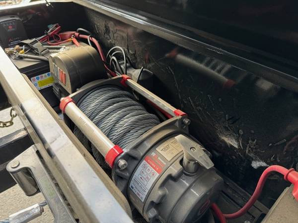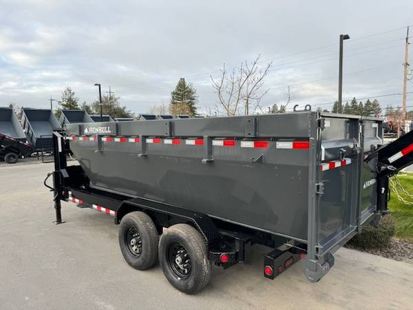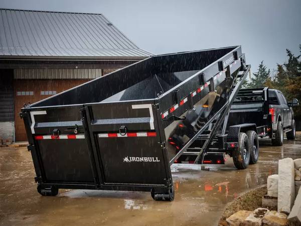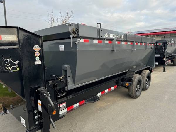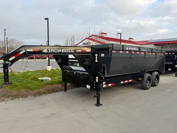 The Iron Bull DBG Gooseneck Roll-Off Dump Trailer was designed to handle the heaviest of loads with a 12'' 19lb I-beam neck and 10'' frame. Built with 2 7,000lb electric brake axles to get you to the job site and back again and a TH-520 scissor hoist for maximum lifting power- this trailer can haul! Add a bin of your choice with 48'' 10 gauge sides, 4 1/2'' DIA front and rear rollers and 22k winch system designed to handle any situation you throw at it. Flatbeds also available.