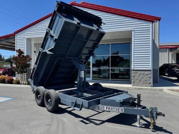 Need a dump trailer to haul construction debris, job site cleanup, landscaping supplies, brush & trees? Stop wasting your time and hurting your back by unloading by hand and get yourself a powered dump trailer. Made in California these Iron Panther dump trailers are a beast of a trailer with features not found elsewhere like: