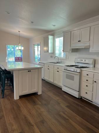 Manufactured 3 bd 2 full bath - 2021 mobile home in Rancho Vista Mobile park ( all ages family park ) space rent $1,195 with all bills around $1450 a month - it has a large kitchen, living room and dining room w, appliances, loundry room, large patio area and 3 car carport -it’s about 1,200 sq ft - all recent remodeled and ready to move in - if you need information contact