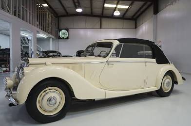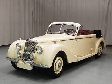 The Riley drophead cabriolet were made by Riley Motors from 1945 until 1955. They were the last models developed independently by Riley before its parent company, Nuffield, merged with Austin to form BMC. The RM series was produced in Coventry until 1949, when production moved to the MG works at Abingdon. This car is a Riley RMD (drophead) which is a traditional 2-door cabriolet convertible with suicide doors, and was the last Riley cabriolet. It uses a 2.5 L 100 hp straight six with a manual transmission. Just over 500 were produced between 1949 and 1952.
