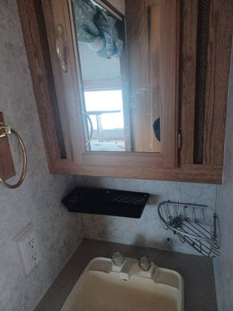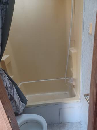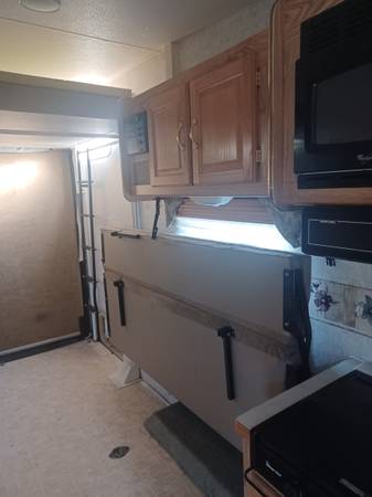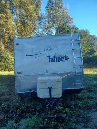 32 ft Toy Hauler Trailer, comes with blocks for wheels. Generator works great. Hitch and sway bar's included. Little bit of water damage in front. Have the title.