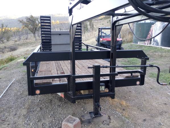 Nice, well taken care of equipment trailer. New coat of paint. Good tires. Good brakes. Good deck. Winch. Can be either a fifth wheel or gooseneck. Also has a totally enclosed 1400 gallon potable water tank that is easily installed and removed. Spare tire. 16' deck and 14gvw. Circa 2006