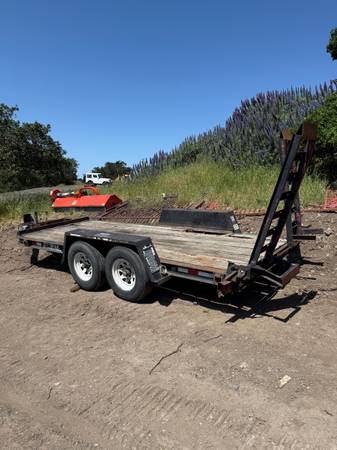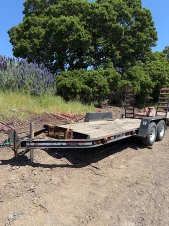 2000 Towmaster trailer Bumper pull 6 lug wheels 2 5/16th 12,000lb rated Wood deck with one board broken Fold up ramps 82” fender to fender 22ft overall 50% tread Title in hand $8500 or best offer