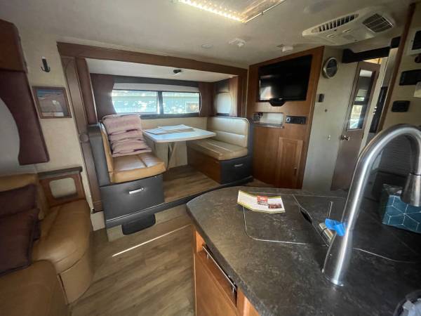 Freshly reupholstered sofa and dinette with much better material then factory and lighter colors.