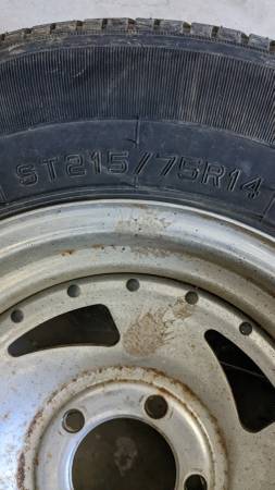 Silver rim Trailer King brand tire Load range D 5 on 4.25 bolt pattern *** I have four of these wheels available, but not all the rims match *** Located in West Petaluma
