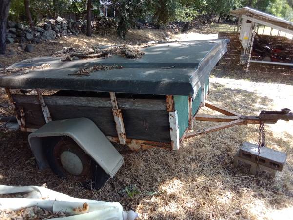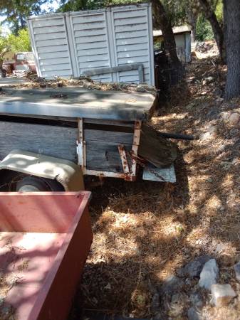 I have small near turn of the century, no floor , trailer ! no bed? "I replaced it"; with 2X6 rdwd-material . it's on somebody else's land .Ive nowhere to park it but need to move it. I'll try to remove the tonneau top and whatever else is in it and dump-it ! Or you can tow it away and keep it !Make me an offer. It cost me bridge tolls, gas., time and labor Some wiggle room on price ! It has a plate. needs a light kit and fenders mounted Its 2" ball I'm in a hurry on this old trailer.. I can deliver it I have tow-lamps. Keeping the fenders in the pics.