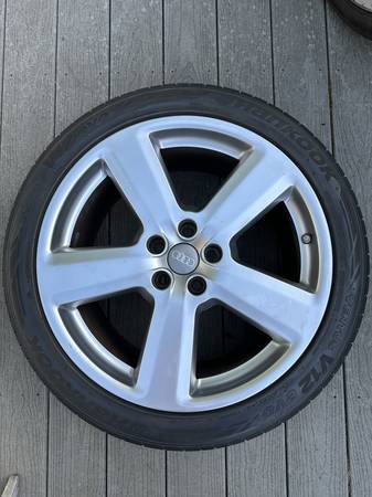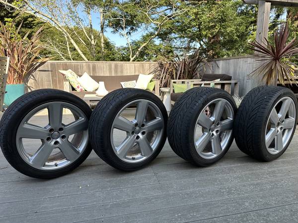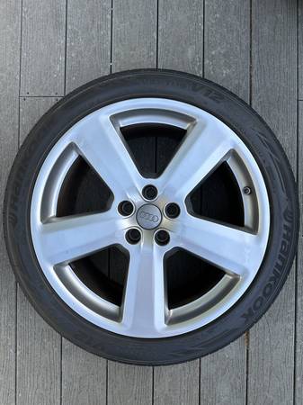 These are rare Audi OEM rims - 19inch diameter, 9 inch wide - originally on a 2004-2009 era Audi S8. They have been well looked after and are in exceptionally good condition with hardly a blemish on any one of them - refer pics. They are wearing the highly rated Hankook Ventus V12 Evo — a high performance summer rated tire, with very few miles on them — the tread still at least 90%.