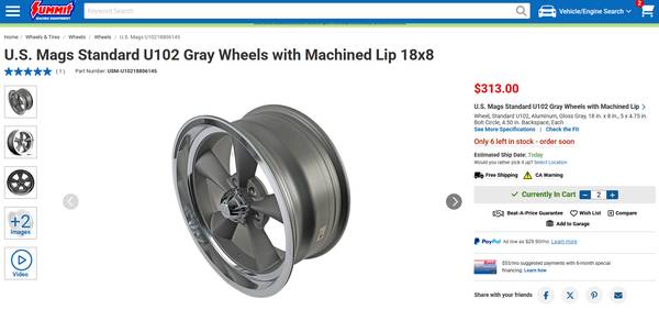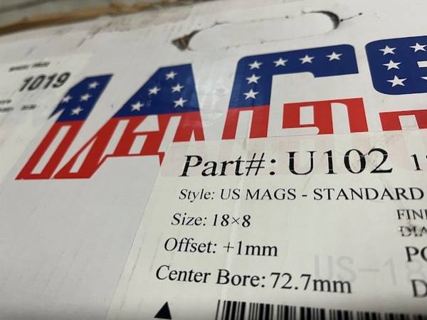 Have a brand new set of 4 U.S. Mags Standard U102 Gray Wheels with Machined Lip that I bought from summit a few years ago. They are 5x4.75 wheel pattern, 2 are 18x8 and 2 are 18x9. These were going to go onto my car but no longer need them. Paid over $1200 from summit new, looking to get $900 message if interested.