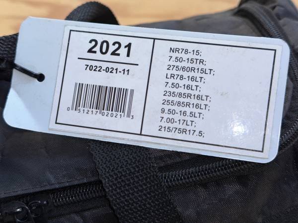 NR78-15, 7.50-15TR, 275/60R15LT, LR78-16LT, 7.50-16LT, 235/85R16LT, 255/85R16LT, 9.50-16.5LT, 7.00-17LT, 215/75R17.5
