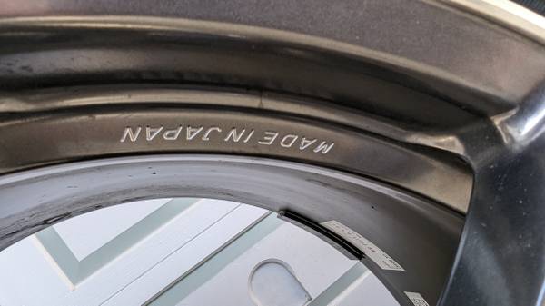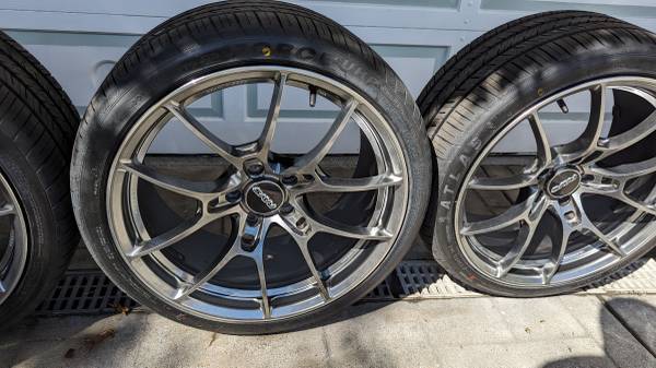 19 INCH WHEELS FROM JAPAN 19 X 9 1/2 EXPENSIVE FITS 5X114.3 PATTERN IN EXCELLENT CONDITION WITH 4 BRAND NEW ATLAS TIRES 255/35/19 6K INVESTED.