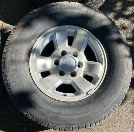 (4) 16″ x 7″ 1996-2002 Toyota 4 Runner Michelin P265/70R16. Tires hold air but are worn and should be replaced. (4) caps are included. $200 for (4) wheels and tires.