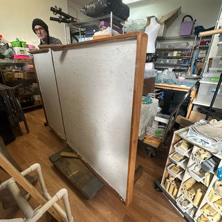Custom build wooden bed frame that folds while in place in the van. This is great for camping. There’s enough for me underneath it that it allows storage. includes J-bolts that secure the frame down...
