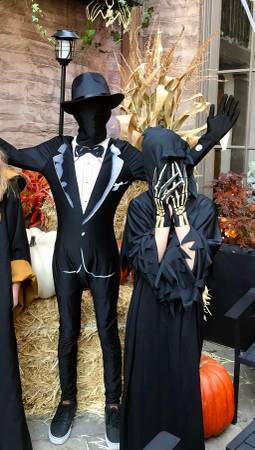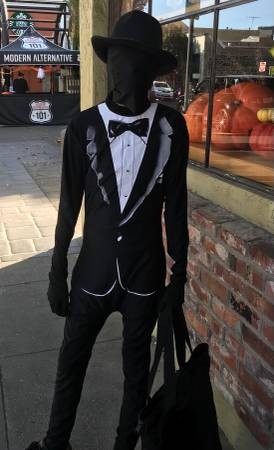 "Formal Suit Disappearing Teenz" costume includes mask, printed bodysuit with attached gloves and socks. Used, in very good used condition. Size is "teen size"