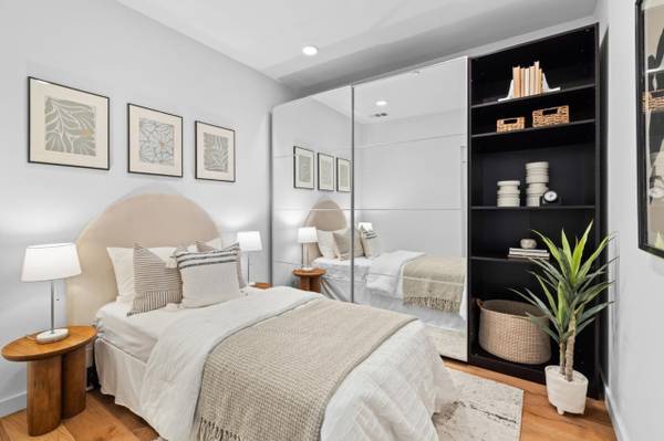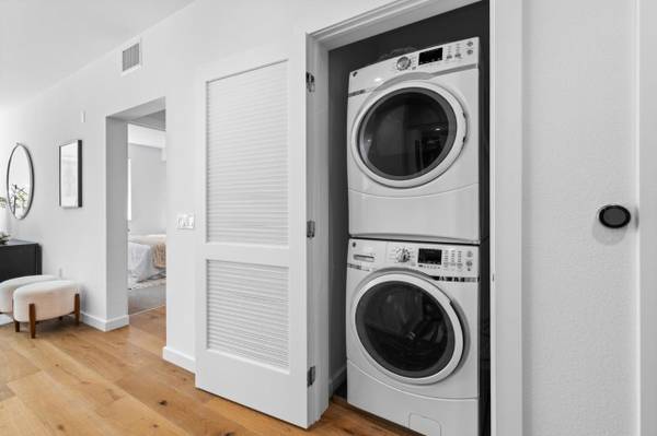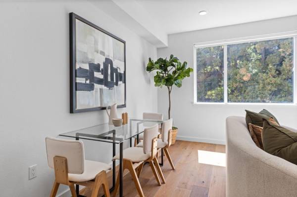 Welcome to The Ashton, where luxury and convenience seamlessly blend in the heart of Belmont. Built in 2019, this exquisite 1 bedroom 1 bath plus den condo offers both comfort and style. Situated in a tranquil courtyard setting away from El Camino, the unit boasts a gourmet kitchen with high-end stainless steel appliances, quartz countertops, ample cabinetry and a spacious island. The versatile den space is ideal for use as a second bedroom, a home office, or a flexible living area to suit your needs. The spacious primary bedroom features a walk-in closet and direct access to a private outdoor patio. Additional highlights include dual vanities, fresh paint, recessed lighting, hardwood floors throughout, nest thermostat, secure underground parking (with the possibility to lease extra parking spots from other units), guest parking, air conditioning, in-unit laundry, well-equipped gym, outdoor lounge, community BBQ area set in serene surroundings, secure package room, bike storage, and more. The property is conveniently located with easy freeway and Caltrain access and a tech bus stop is right outside the building. You'll enjoy the ease of walking to numerous shops and restaurants. Top-rated Belmont schools. Experience the perfect blend of luxury and practicality at The Ashton!