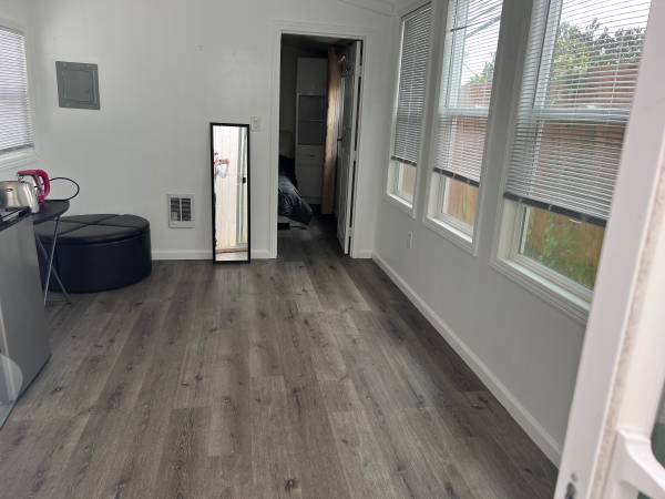 New remodeled 1 living room 1 bedroom and 1bathroom with a bathtub ADU unit in a single family house backyard. This unit is totally separate from the main house with its own entrance door and gate. Also there is a nice deck surrounded the unit which you can sitting for Coffee. This whole unit is very quiet and private. The unit has own refrigerator, microwave and all the rooms have heaters including the bathroom. Also the laundry and second main kitchen with stove are located the main house downstairs unit. The house is on the Pacific side of Daly City. Nice and safe neighborhood and convenient location. Also free way 101, 280 and highway 1 are all about few minutes to get on. Walk distance to the Safeway shopping mall and Muccle Rock Beach. There is a garage parking for this unit. There is a bus stop to the BART station which is only one block away from the house. It is good for a single person with good credit, regular job and No smoke person. Please contact show contact info