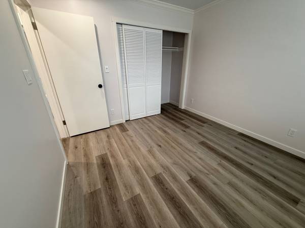 The completely renovated 3BR/1.5BA premises for rent, about 1,070 sq. ft., are on the upper main level of a single-family house, with a downstairs ADU unit and a separate entrance for privacy. Premises include an inviting L-shaped living/dining combo space with decorative fireplace; an open, completely renovated kitchen with newer amenities and appliances (e.g. cabinets, granite countertops, dishwasher, etc.); passage door leads to a huge wooden deck for that easy relaxing; wall-to-wall hardwood floor throughout; 3 bedrooms, one full bath with an additional half bath for convenience; and personal in-unit laundry (new stacked washer/dryer) included. The condition is brand new, cleaned, and ready to move in.