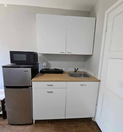- New Bathroom and Kitchenette: Ideal for light cooking with a new microwave, fridge, electric cooktop, and sink