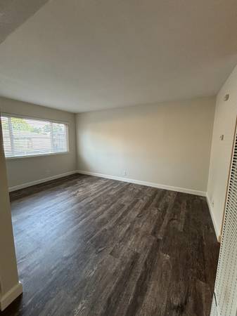 Newly painted, wood plank flooring, new window covering, spacious bedroom with mirrored closet doors , electric stove, dinning ceiling fan, 2 large hallway closets with shelving, full size bathroom, assigned covered parking, on-site shared laundry facilities.