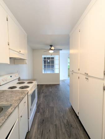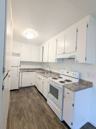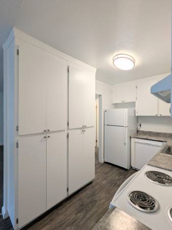 This two-bedroom apartment is set on the top floor (2nd story), features an open layout with an inviting pass-through kitchen wall, has a split-door dividing the toilet/shower and sink making getting ready a breeze. Fully equipped with heating, kitchen has a stove, dishwasher, refrigerator and garbage disposal.