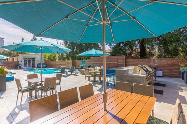 The modern mid-rise community near Menlo Park is outfitted with a host of desirable amenities, including a refreshing swimming pool, barbecue area, and relaxing courtyard with fireplaces. Our homes are warm and inviting and impeccably designed with modern features and finishes throughout.