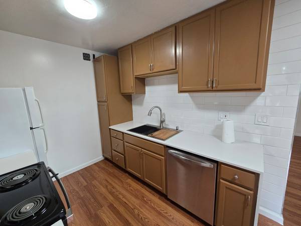 This 2 bedroom 1 Bath is 811.25 sq ft., the upper unit in the 4-plex. The unit has a NEWLY REMODELED Kitchen with new stove and hood, counter, sink and garbage disposal, and also NEWLY painted. Laundry facilities is onsight. Water and garbage is paid for. Very close to Stanford University, Caltrain, and a half a block from Dr Edith Eugene Johnson Park, and 3 blocks to University avenues cafes, restaurants, bank and shops.