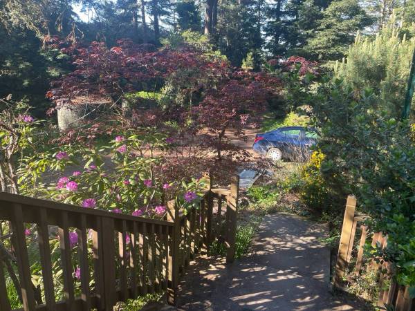 Quiet room available in a spacious house tucked in the woods, just off Skyline Blvd. Surrounded by nature, with hiking trails nearby and stars overhead at night. Ideal for someone who appreciates fresh air, and the sounds of the forest. 25 minutes from Stanford campus, walking distance to Alices.
