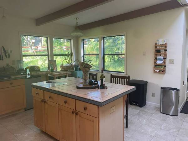 The house has laundry, dishwasher, plenty of parking, big deck out front, and two very small decks in back. The woodfire stove is my personal favorite aspect of the house, and we have it burning all winter! The last three pictures are pictures of the room for rent. There are 2.5 bathrooms in the house, one is in the master bedroom, and the other 1.5 are shared between the other rooms.