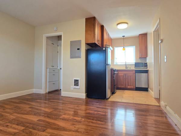 Spacious and remodeled upstairs junior 1 bedroom, 1 bathroom apartment with a 1 car carport centrally located close to downtown Redwood City. The apartment features fresh paint, wood floors, and dual pane windows. The kitchen was completely remodeled with new cabinets, granite countertops, and stainless steel appliances. The bathroom was renovated with a new tub with shower enclosure and glass shower doors.