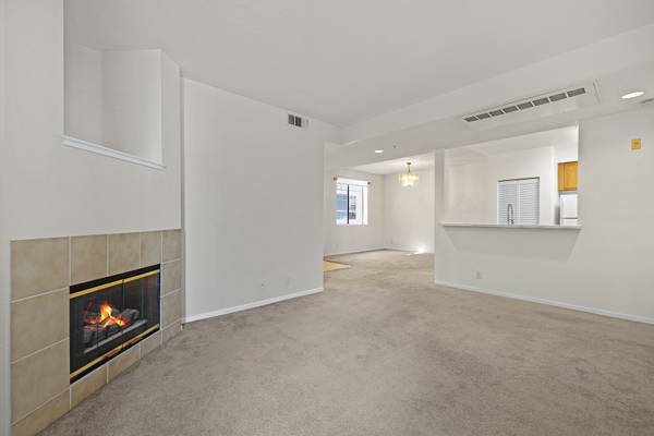 You'll love the open-concept design of this condo! There is plenty of room for you and your friends to enjoy hanging out or having a meal. Ample dining space next to the kitchen boasts a stylish chandelier. The living room features a gas fireplace, direct access to the large deck, and a vaulted ceiling providing an airy feel to the space. The kitchen has new quartz counters, oodles of storage, and a gas range. And check out the in-unit washer and dryer for your convenience! Two bedrooms, including the primary suite. The primary bedroom includes two closets, double vanity, and access to the deck overlooking the gardens. The second bedroom has easy access to the hall bath. The complex has a nice collection of amenities, and is near Trader Joe's, Costco, BART, Kaiser, and all that South City has to offer. Two parking spaces included with the rent. This is a 1-year lease. Owner pays water and garbage. Tenant pays all other utilities.