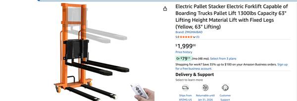 Electric Pallet Stacker Electric Forklift Capable of Boarding Trucks Pallet Lift 1300lbs Capacity 63" Lifting Height Material Lift with Fixed Legs. Brand new Forklift. Used once don't need any...