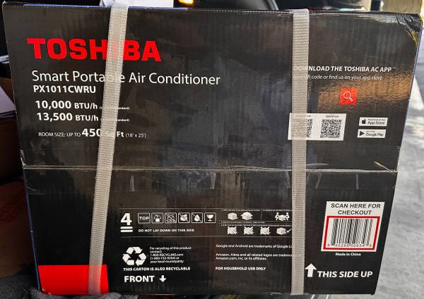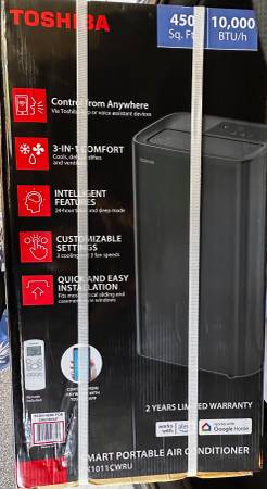 Here’s a link to the item for more details: https://www.homedepot.com/p/Toshiba-10-000-DOE-BTU-115-Volt-Smart-Wi-Fi-Portable-Air-Conditioner-up-to-450-sq-ft-Cools-and-Dehumidifies-PX1011CWRU/327511934
