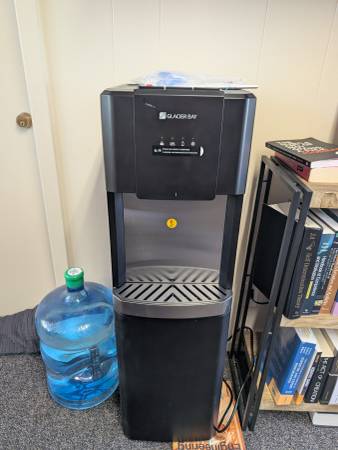 - Matte Black and Stainless Steel Bottom-Load Water Dispenser