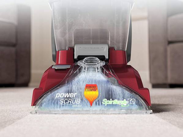 The Power Scrub Deluxe Carpet Cleaner is everything you need to get an effective deep clean on your carpets, rugs and upholstery. SpinScrub Brushes do the hard work of scrubbing out tough stains, while HeatForce Technology and the Dual V nozzle work together to deliver a fast, even dry.