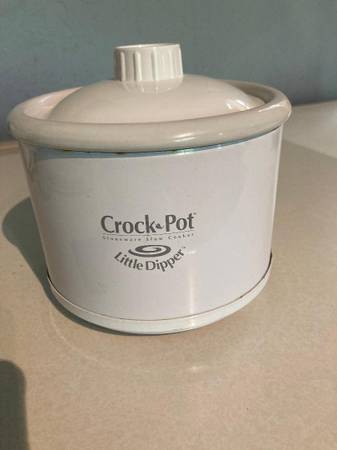 Crockpot Little Dipper slow cooker / food warmer. Stoneware - great for keeping foods warm for a party - fondue, nachos, dip, etc. Like new - clean with cord and plastic cover / top.