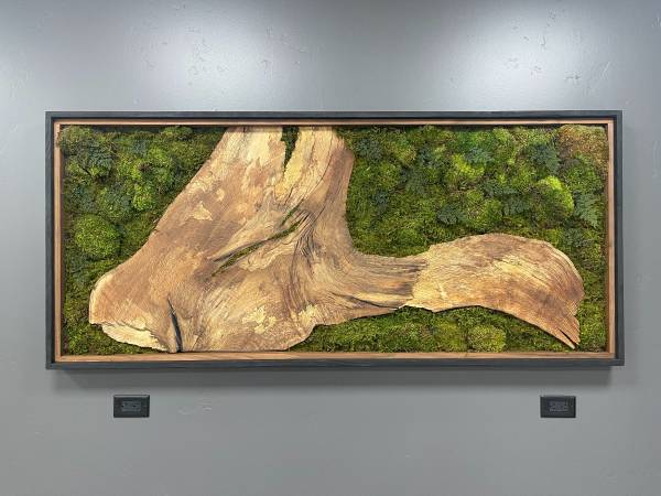 Custom art, reclaimed wood, rustic, steel, moss art, interior design, wall art, wall decor, moss design, wood art, home decor, custom made, modern rustic, green design