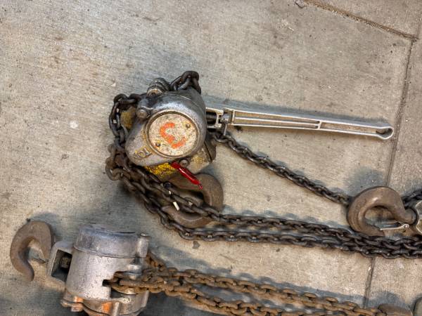 heavy duty come along hoist ONLY HAVE TWO LEFT THE SMALLER ONE IS SOLD I NEED TO TAKE A NEW PICTURE SO SORRY 1. 3 ton for 100.00 2. 1 ton for 50.00 I don't need them anymore thank you please text or...