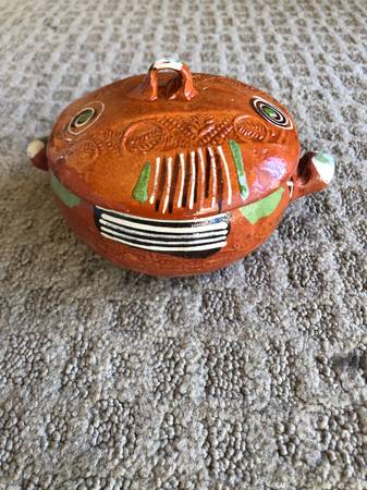 I am selling a Vintage small Mexican Clay Covered Bowl, in Excellent Condition! The bowl measures 4" in diameter. If you have any questions, please feel free to email me. I live on the coast, in El Granada (approx. 5 miles North of Half Moon Bay). Thank you for your interest.