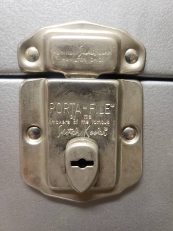 We have four (4) vintage 1950s metal Porta-File storage boxes all with keys. These are by Hamilton Skotch Corp. in Hamilton, Ohio, makers of the famous Skotch Kooler. 3 of the 4 boxes are deep boxes while one is a narrower 5". See photos for details but note that one of the larger ones in the photo sold separately.