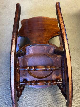 In very sturdy condition and probably at least 100 years old. A wonderful rocker and conversation piece.