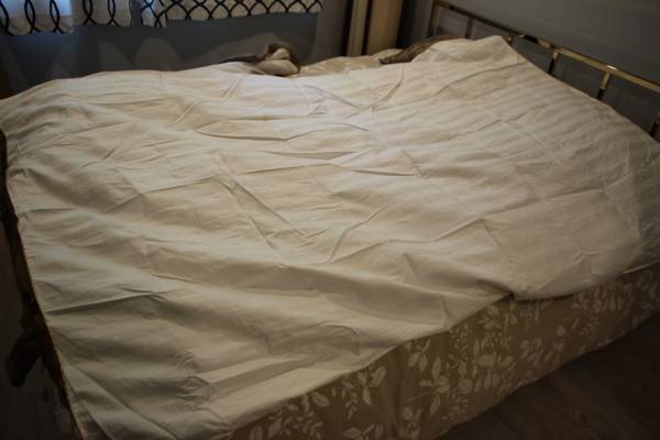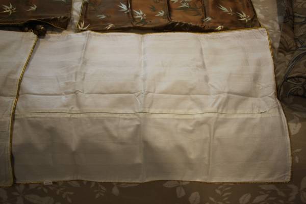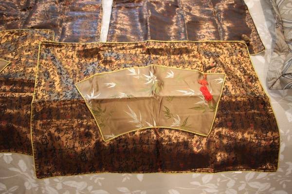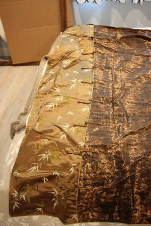 I bought this beautiful silk bedding set on my China tour in 2005. Bought it from one of the silk factories on our tour. Its for a full size bed. I never used it. Its been in storage for all these years. I put it in a plastic bag from Ross for better protection. Comes with everything in the pics. Duvet cover, two standard pillow cases, two square type cases. Not familiar with bedding, but this may work with queen size comforter. Please ask any questions. Asking $150 for the set.