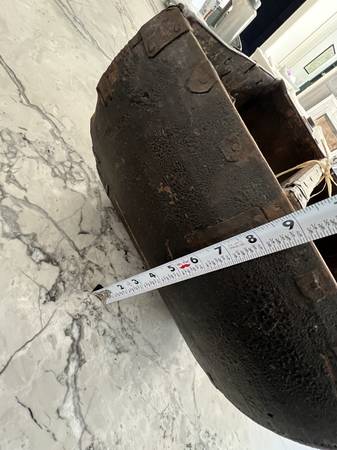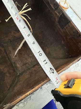 Primative Antique Chinese Elmwood Rice Basket. From Shanxi province in approximately 1910. Rice measures were made in various sizes, this one qualifying as large. To appreciate basic craftsmanship, carefully examine figner joinery. Iron brackets reinforce, and others would have been added later for repair. No two are alike.