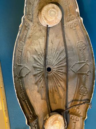*** Yes, still available***Beautiful fixture for use as ceiling light or other fun projects like candle holder. It’s not cast iron and, as can be seen in the pic, the wiring is very old. The fixture needs to be rewired. It’s an antique; not reproduction. Its 14" long, 7" wide and just under 3" tall. Asking $20 cash. Curbside pick-up North San Mateo near ECR/Poplar.