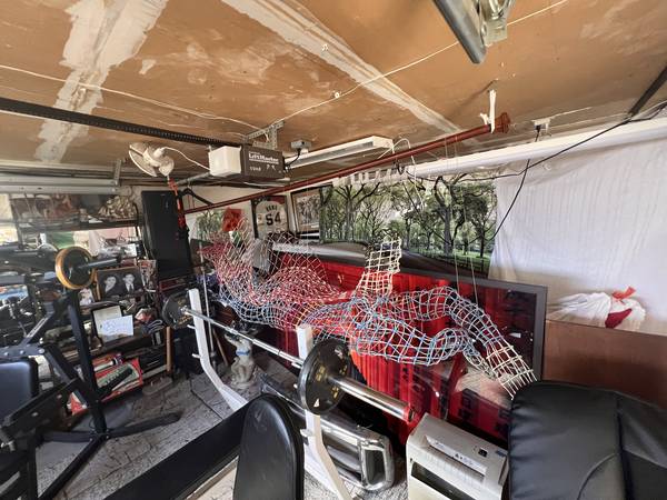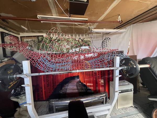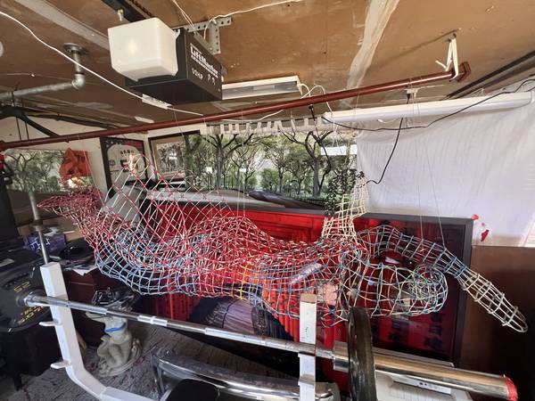 One of a kind life size flying / Suspending Superman Sculpture Made of heavy duty coated wire; wires to hang are attached to top of sculpture Item is approximately 35 lbs. Great for Fitness Center /...