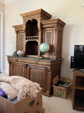 This type of furniture is also sometimes referred to as a buffet, cupboard, or credenza, but the overall form and decorative elements strongly identify it as a French Renaissance Revival sideboard from the early 1900s.