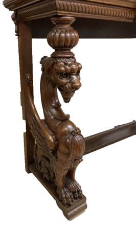 This is an antique table in good condition with Griffin figures on each side. 55"x16"x30". $2500.