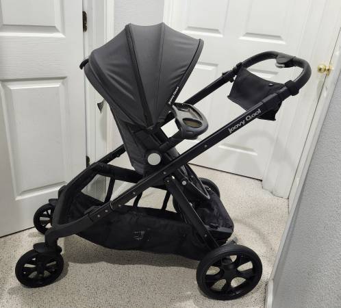This Joovy Qool stroller is almost new and excellent for a growing family. This is the Premium Customizable Single Stroller that as your family grows can easily become a double and even a triple stroller with accessories sold separately and allows for over 50+ configurations. Features a leather handlebar, adjustable footrest, and luxurious UPF 50+ extra-large canopy. It is strong and easy to maneuver with one hand for the everyday on the go life. Has an easy one-hand reclining seat, extra large storage basket, snack tray, and smooth ride thanks to its rear wheel suspension and durable never-flat rubber all terrain tires. Supports up to 55 lbs per seat, making it suitable for kids from about 6 months old (or earlier with adapters), and built to support multiple children with adapters, second seat, or bench seat options. Accommodates adapters for infant car seats, bassinets, second toddler seat and a bench seat, all sold as accessories to be purchased to match your needs. Also included is the Joovy Parent Organizer with cup holders and storing your phone, wallet, pacifiers and other items needed to have within arms reach. Great for every day on the go, travel, Disney Parks, museums, grocery stores, travel, airports, etc. From pet free, smoke free home. Originally purchased for $600.